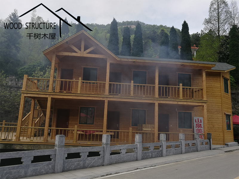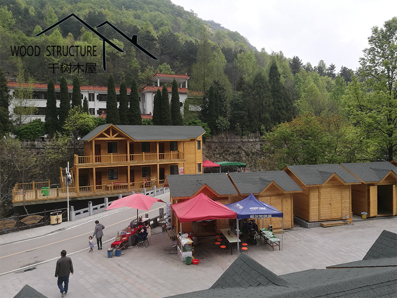 風(fēng)景名勝區(qū)的復(fù)式辦公樓木屋和20個售賣小木屋由河南千樹木業(yè)有限公司(以下簡稱千樹木屋)設(shè)計并建造。