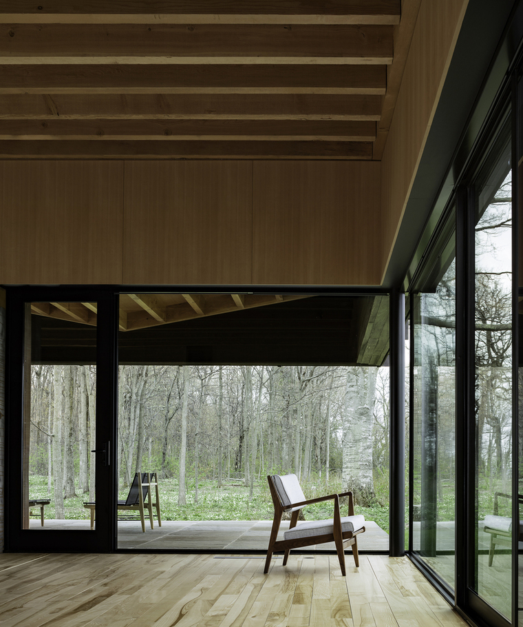 密歇根州特拉弗斯城的EnvironmentArchitects (AOR)設(shè)計了一棟棲息在木從中的