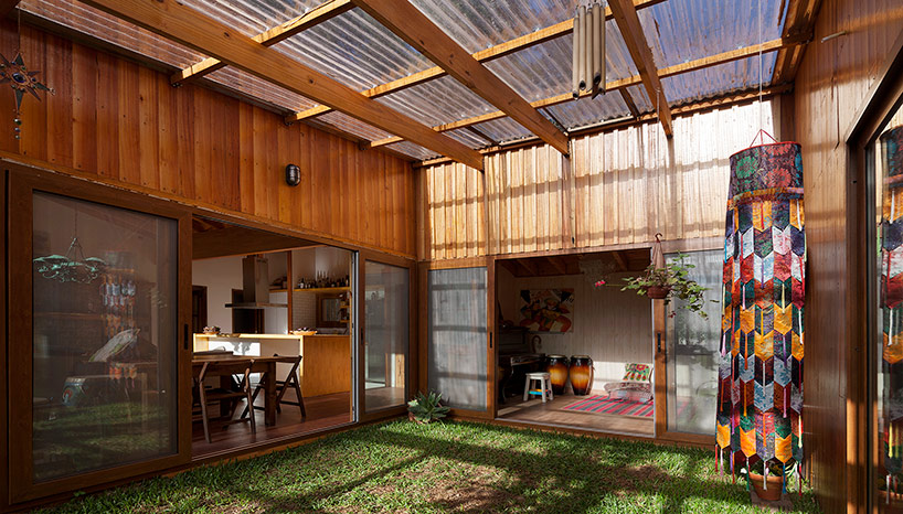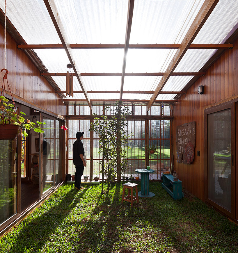 穿插在住宅當中的綠色庭院,通向起居空間、辦公空間和主臥。