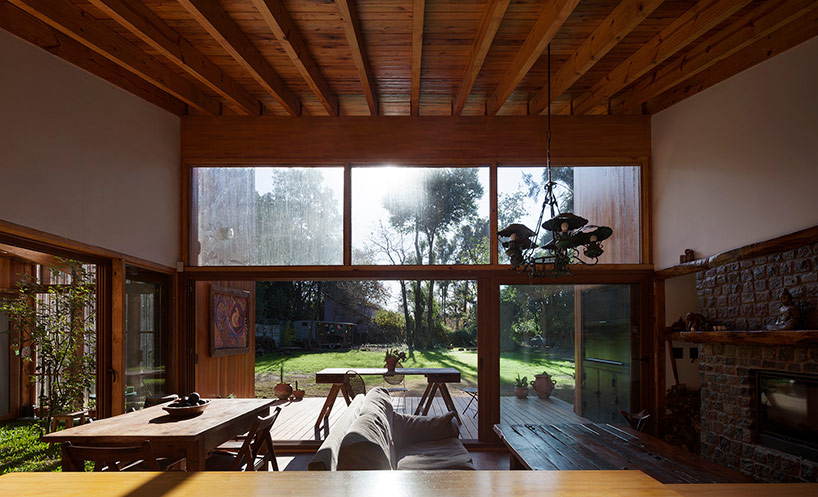 傾斜的屋頂讓交流空間和主臥朝私人庭院開放,擴大了視野景色,增強光線強度。