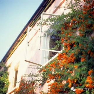 攀附的三角梅、紫藤、凌霄等襯托著它,