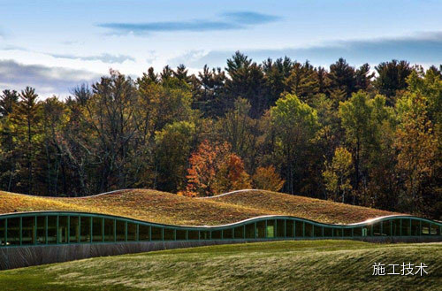 這個總面積達16500平方英尺的建筑屋頂由植被覆蓋而成,與周圍植物的顏色一致,有利于建筑物與自然風光相互協(xié)調(diào)。從某些角度,建筑幾乎消失于人們的視野 之中。當?shù)刎S富的可再生建筑材料在整個建筑框架、桁架、欄桿、單板和木材復合板中都得到了充分應用。欄桿是在當?shù)厥崭?、研磨、烘干后進行再裝配的。