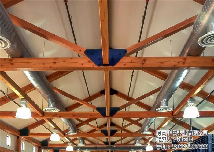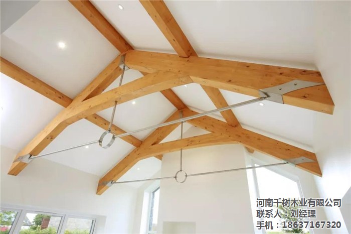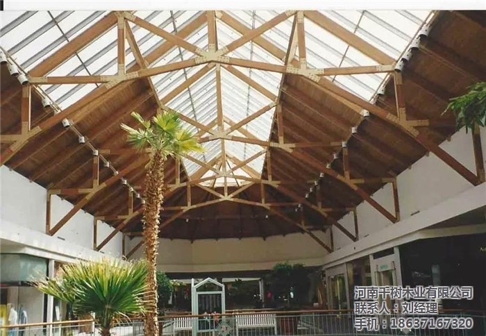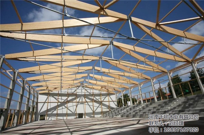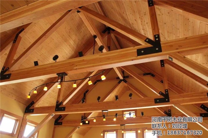 河南景區(qū)木屋桁架的外形變化多樣,可以根據(jù)所采用的屋面材料、桁架跨度、建筑造型、制造條件和桁架的受力性能等因素來確定。木桁架的外形通常有三角形、梯形及多邊形等三種,當采用膠合木結(jié)構(gòu)時,還可用拱形。