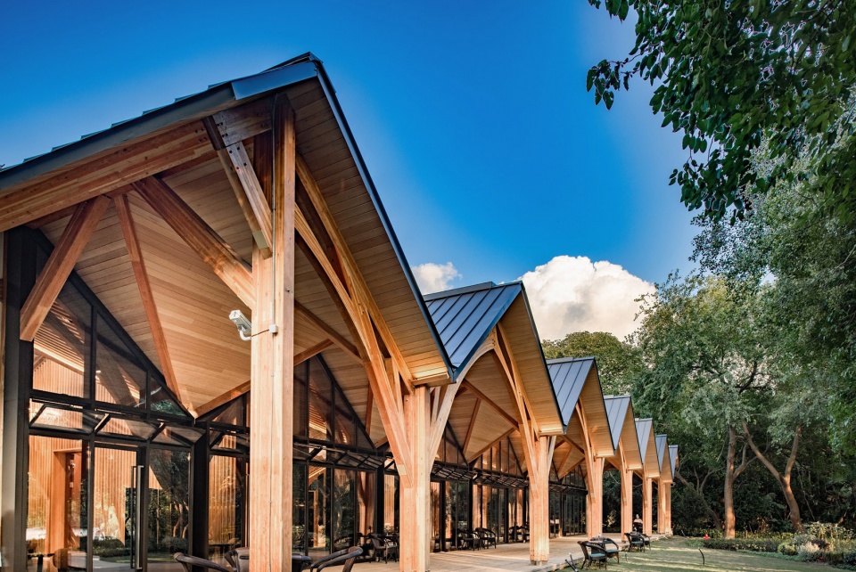 重型木屋是指采用工程木產(chǎn)品以及方木或者原木作為承重構件的大跨度梁柱結構。重型木結構因為其外露的木材特性,能充分體現(xiàn)木材的天然的色澤和美麗的花紋,被廣泛用于一些有高尚、環(huán)保追求的建筑中。重型木結構優(yōu)勢 : 木結構建筑在近幾個世紀以來一直在北美、歐洲以及亞洲地區(qū)(韓國,日本,臺灣,中東地區(qū))得到了廣泛的應用,并仍將是21世紀的主導建筑體系,其原因在于木結構建筑具備以下獨特的優(yōu)勢: (1)節(jié)能保溫 (2)美觀舒適、溫暖宜人 (3)環(huán)保建材:天然,健康,可更新 (4)經(jīng)久耐用 (5)抗震防火 (6)隔音效果佳.缺點:材料用量大,費用相對要高一些。