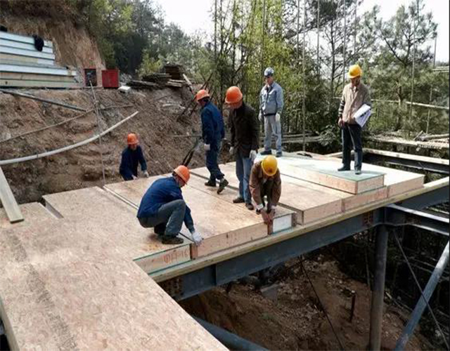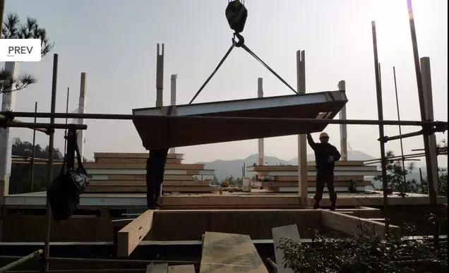 該項目的施工采用了全預制化方法,所有木質構件如墻板,樓板都是在工廠做好送到現(xiàn)場安裝。