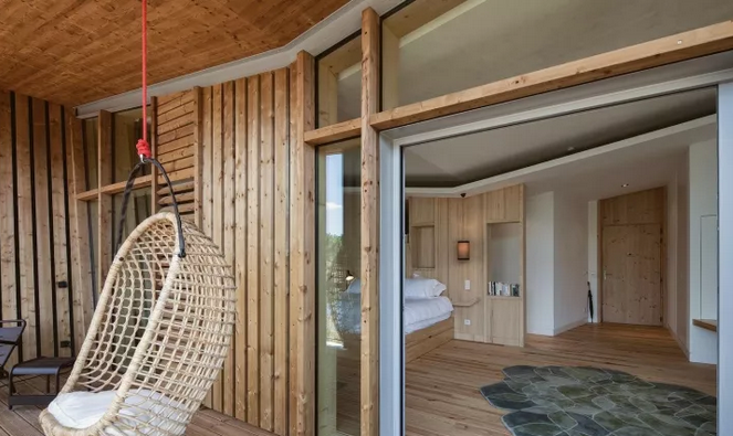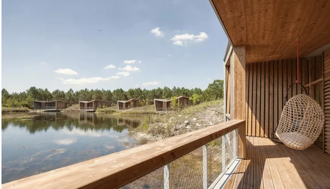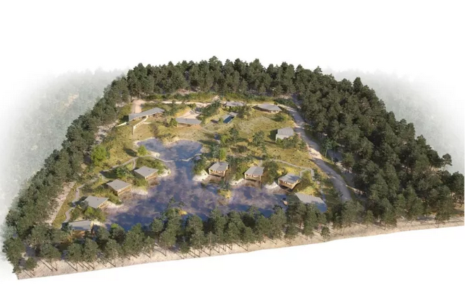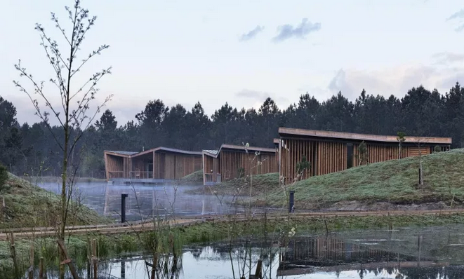 項目中所運用的斜線,以及接待處微微傾斜的角度與后面的圓形沙丘和線性冠層形成鮮明的對比。建筑與環(huán)境之間的和諧關(guān)系不是建立在模仿的基礎(chǔ)上,而是由一種截然相反的同源性來定義的。這些小的、獨立的單位被安置在水面上,它們是景觀中的一個重要的節(jié)點,與自然共同形成一個持續(xù)的有機環(huán)境。不同的路徑在山之間蜿蜒盤旋,以基地上各種不同的視角,你可以清晰地感覺到它的真實性。