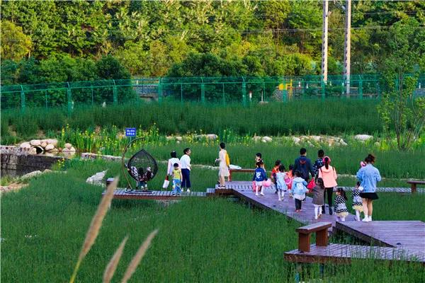 而今,父母帶著孩子們花海中的帳篷噙香而眠,在水域捕魚捉蝦,在郊野體驗(yàn)極致運(yùn)動(dòng),在稻田采摘喂養(yǎng),站在山上看潑河水庫(kù)波光淋漓,散落的豫南民居炊煙裊裊。依然樸實(shí)而美好。