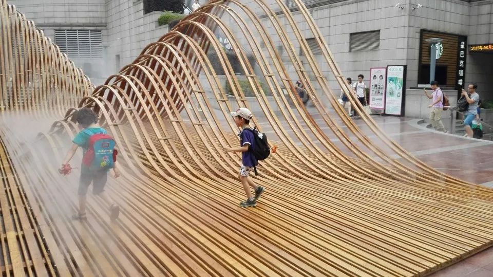 “也許人們會(huì)認(rèn)為石頭是冰冷的、完全是無(wú)機(jī)物的狀態(tài),可我認(rèn)為石頭是會(huì)說(shuō)話的”,設(shè)計(jì)師王剛用竹鋼條材的相互搭接,在墻面上制作了一個(gè)又一個(gè)立體的石塊~
