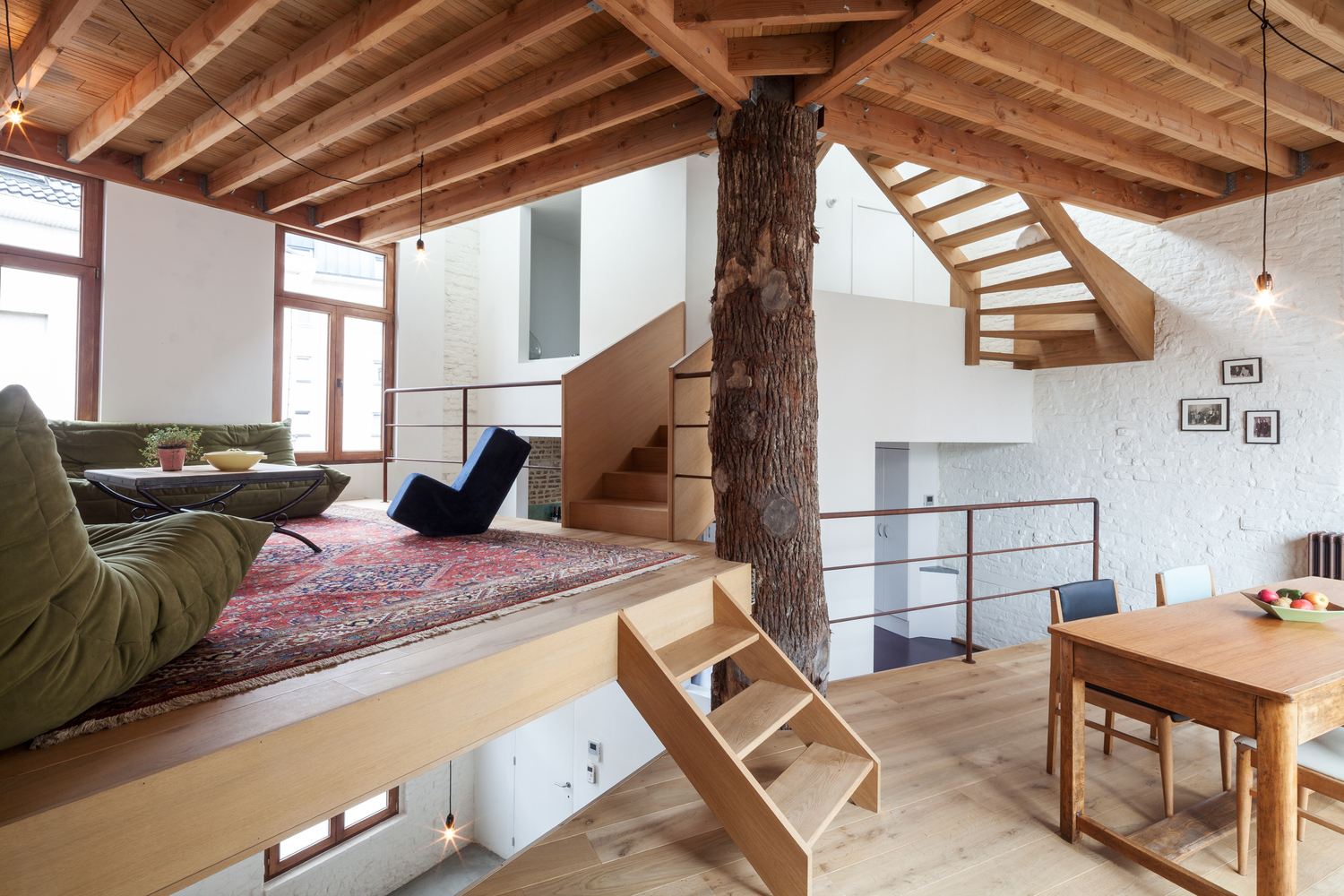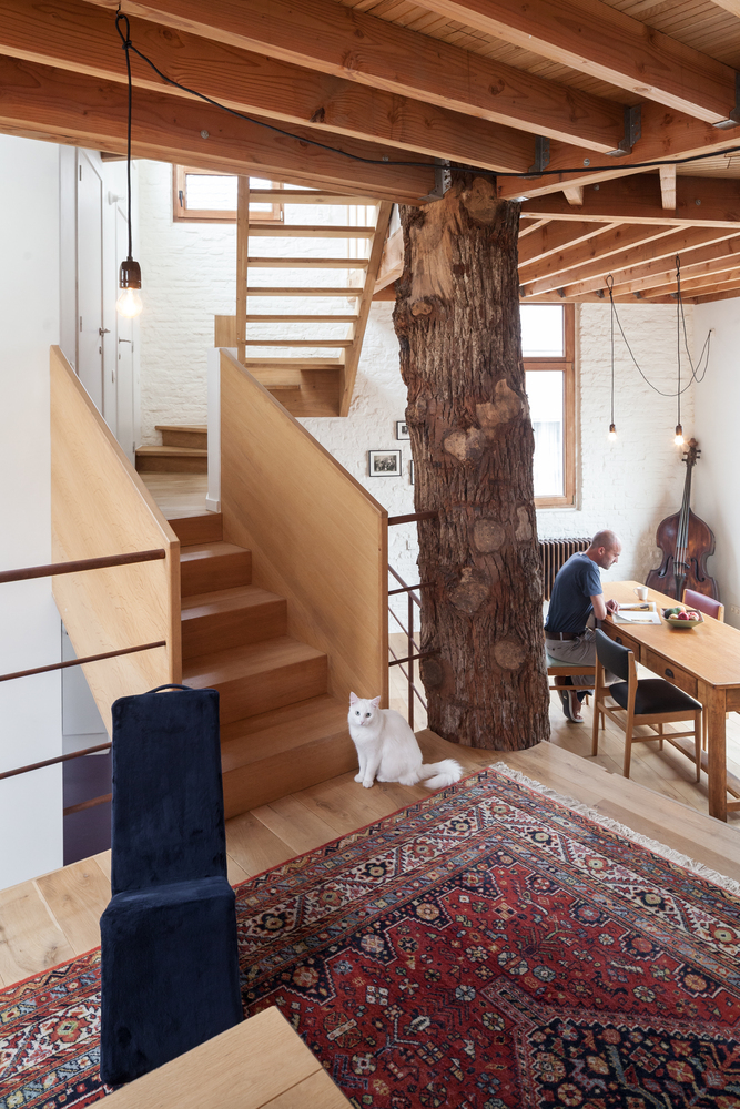 業(yè)主是一位藝術(shù)家,他將房屋一層用作工作室。家中樓層越高,空間的私密性越強(qiáng)。臥室位于閣樓上。